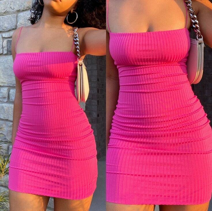 Cette robe moulante rose est parfaite pour une soirée élégante. Fabriquée avec un tissu extensible et nervuré, elle épouse la silhouette avec style et confort. Son design sans manches et son encolure droite la rendent moderne et chic. Un choix idéal pour se démarquer lors de vos évènements spéciaux.