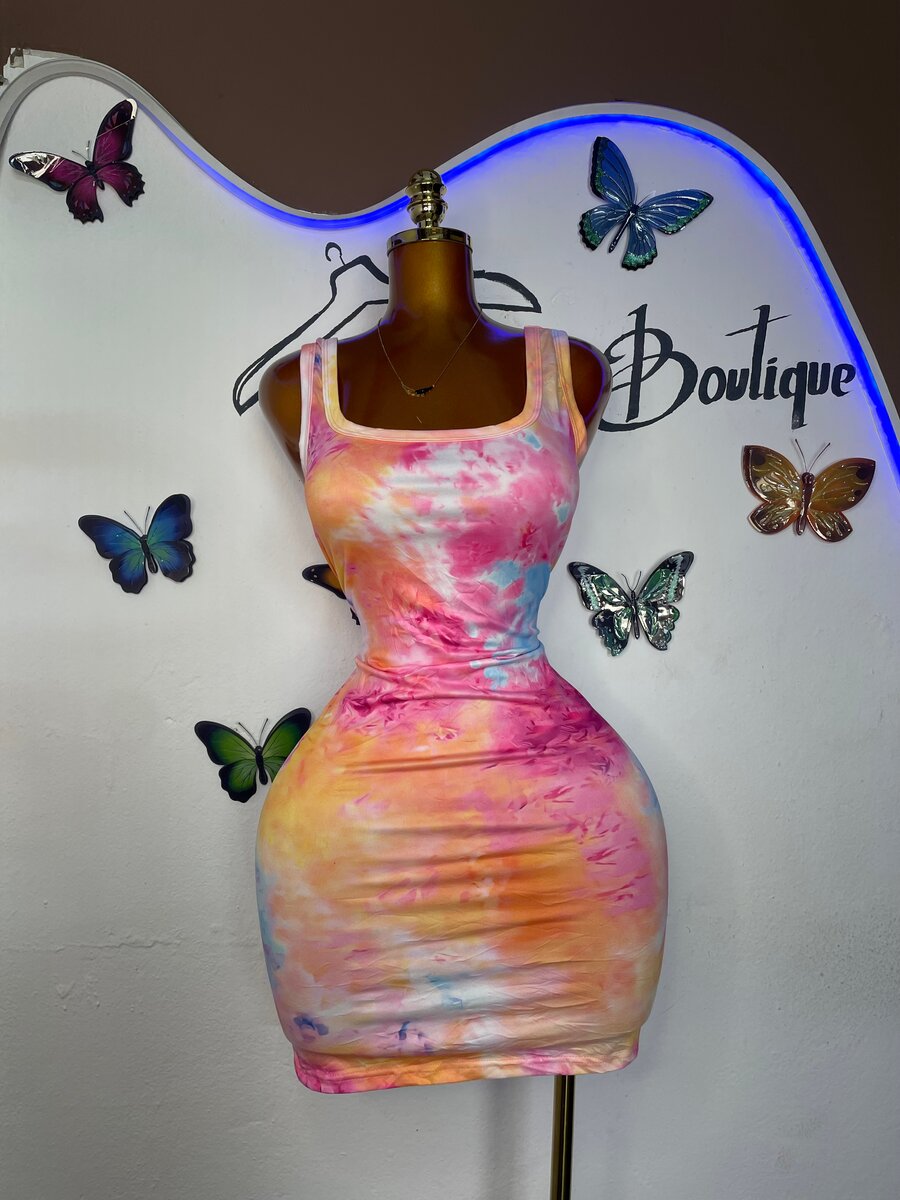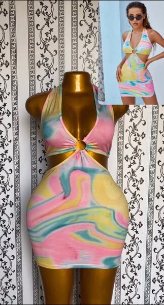 Ajoutez une touche de couleur à votre garde-robe avec cette robe moulante tie-dye. Parfaite pour une soirée d'été ou une sortie entre amis. Le design ajusté et les couleurs vibrantes mettent en valeur votre silhouette et apportent une ambiance joyeuse à votre look. Confectionnée dans un tissu confortable, elle assure style et confort à chaque occasion.