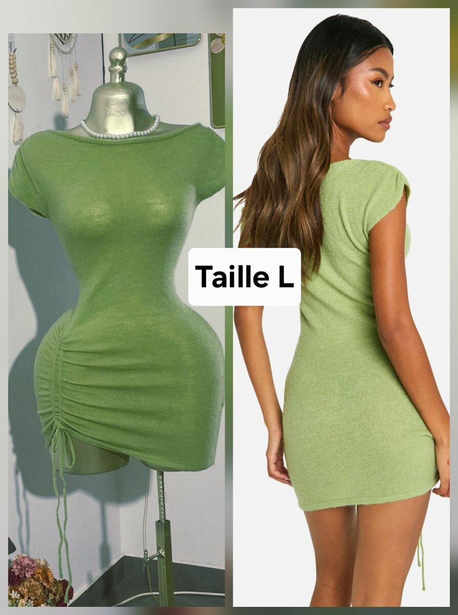 Découvrez cette robe moulante verte, parfaite pour mettre en valeur vos courbes. Idéale pour une soirée ou un événement spécial, elle allie confort et style avec son matériau doux et sa coupe ajustée. Disponible en taille L, cette pièce tendance saura vous démarquer.