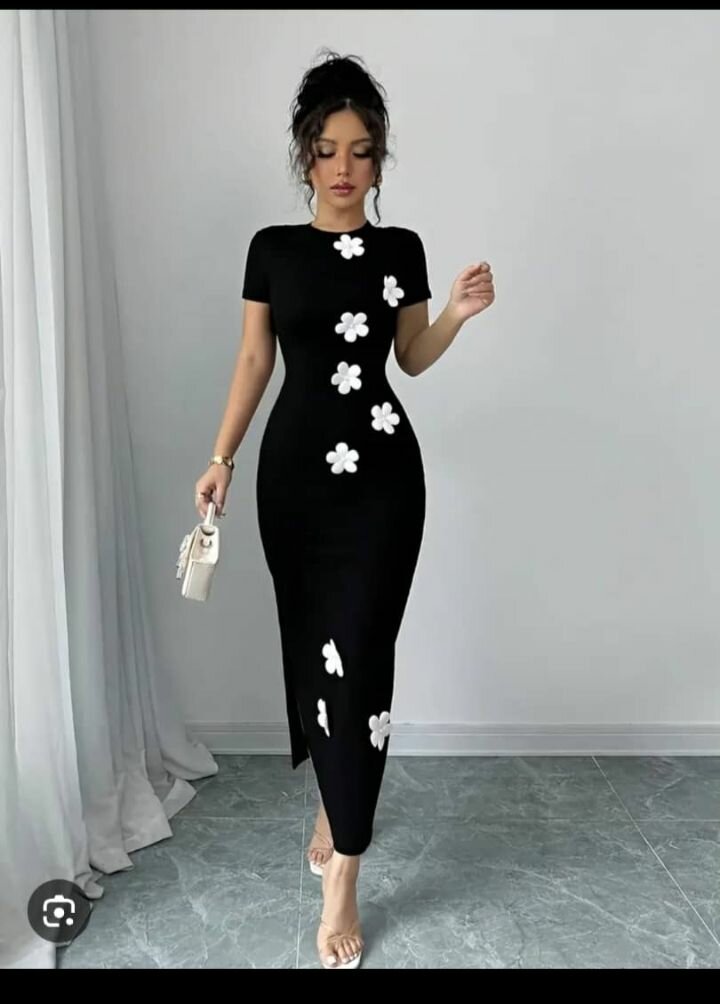 Sublimez votre style avec cette robe noire ornée de fleurs blanches, idéale pour une soirée élégante. Son design ajusté flatte toutes les silhouettes, offrant à la fois confort et modernité. Parfaite pour un look chic et sophistiqué, elle deviendra l'élément phare de votre garde-robe.