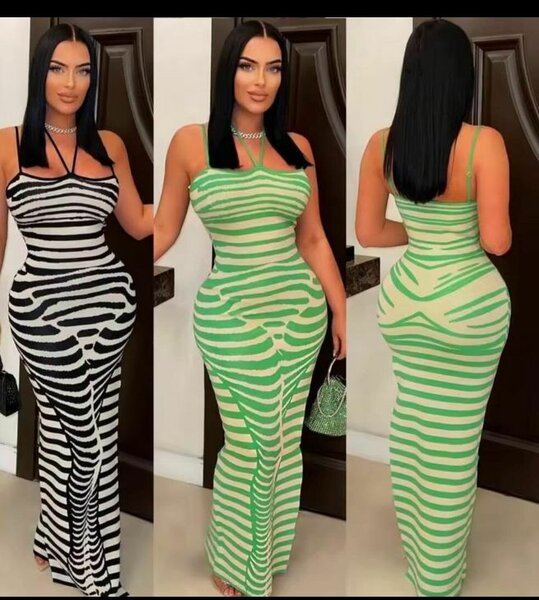 Robe moulante à rayures