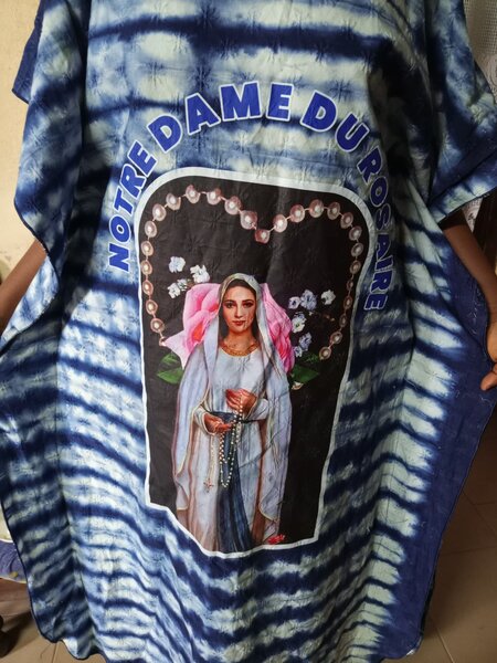 Élégante robe orange avec motif de Notre Dame de Lourdes, idéale pour des cérémonies religieuses. Confectionnée avec soin, elle apporte une touche de dévotion et de style. Parfaite pour les fidèles cherchant à montrer leur foi tout en restant fashion.