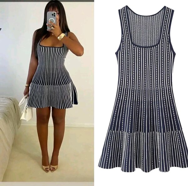 Cette robe patineuse élégante avec des rayures verticales offre à la fois style et confort. Parfaite pour une journée décontractée ou une soirée estivale. Fabriquée dans un tissu extensible, elle épouse les courbes tout en étant légère et respirante. Ajoutez une touche de mode à votre garde-robe avec cette pièce unique.