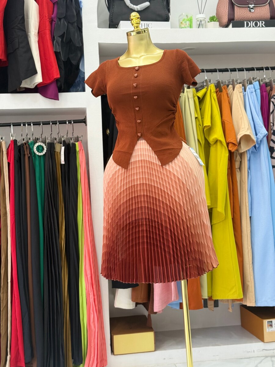 Robe élégante avec haut ajusté et jupe plissée bicolore. Parfaite pour des occasions spéciales ou un look quotidien chic. Disponible en plusieurs couleurs.