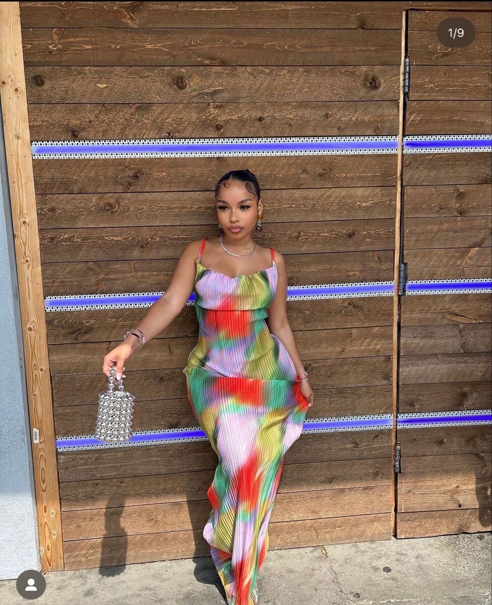 Robe plissée multicolore