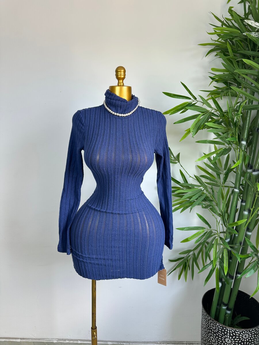 Sophistiquée et confortable, cette robe pull bleu à col roulé est idéale pour les journées fraîches. Sa coupe ajustée met en valeur la silhouette, tout en offrant chaleur et élégance. Parfaite pour un look chic et casual au quotidien.