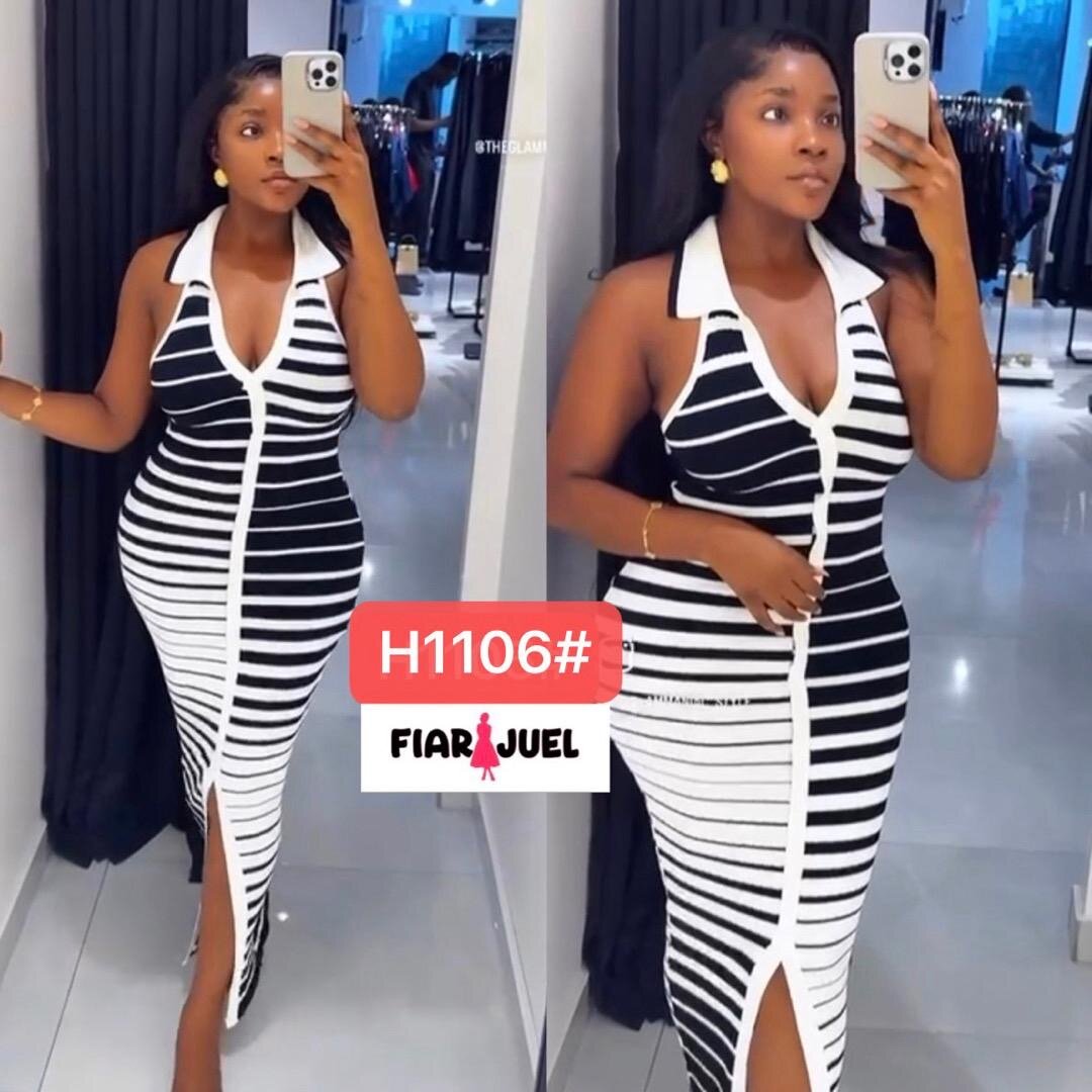 Cette robe élégante à rayures est parfaite pour toutes vos sorties. Avec son décolleté audacieux et sa coupe flatteuse, elle mettra en valeur votre silhouette. Idéale pour les soirées ou les événements formels. Un choix incontournable pour un look chic et sophistiqué.
