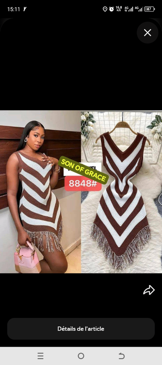 Découvrez cette superbe robe rayée marron et blanche, parfaite pour toutes les occasions. Avec son design unique à franges et ses motifs géométriques, elle est idéale pour mettre en valeur votre silhouette. Que ce soit pour une soirée ou une sortie décontractée, cette robe est le choix parfait pour une allure chic et tendance. Matériaux confortables et légers pour une sensation agréable toute la journée.