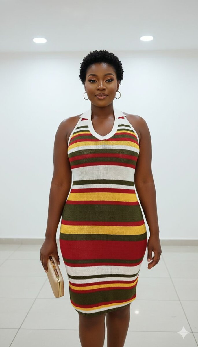 Découvrez cette robe rayée moulante, idéale pour une soirée ou une sortie décontractée. Avec ses couleurs vibrantes et son design moderne, elle mettra en valeur votre silhouette. Confortable et stylée, cette robe est un incontournable de votre garde-robe.