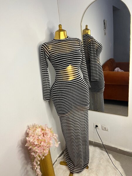 Cette robe rayée élégante pour femme combine style et confort avec sa coupe ajustée et ses manches longues. Parfaite pour une allure sophistiquée lors de diverses occasions, cette robe est un incontournable de votre garde-robe. Idéale pour des sorties en ville ou des soirées entre amis, elle vous assure une allure chic et tendance.