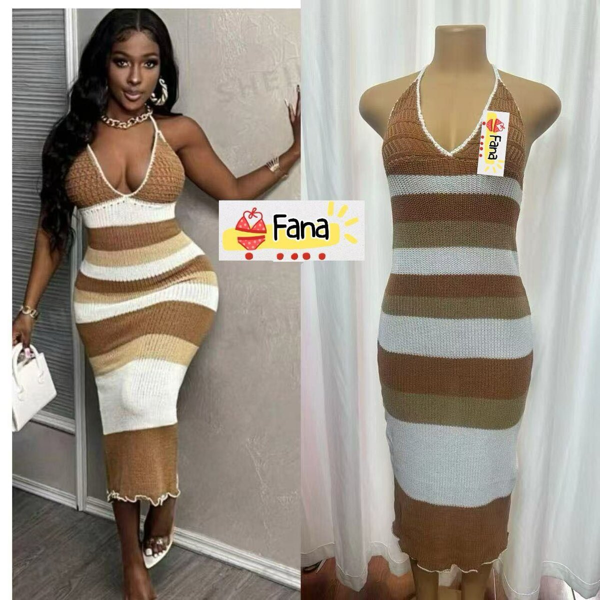 Élégante robe rayée en tricot, parfaite pour un look chic et décontracté. Conçue avec des couleurs chaudes pour mettre en valeur toutes les silhouettes. Idéale pour des sorties ou des événements spéciaux. Matière douce et agréable à porter.