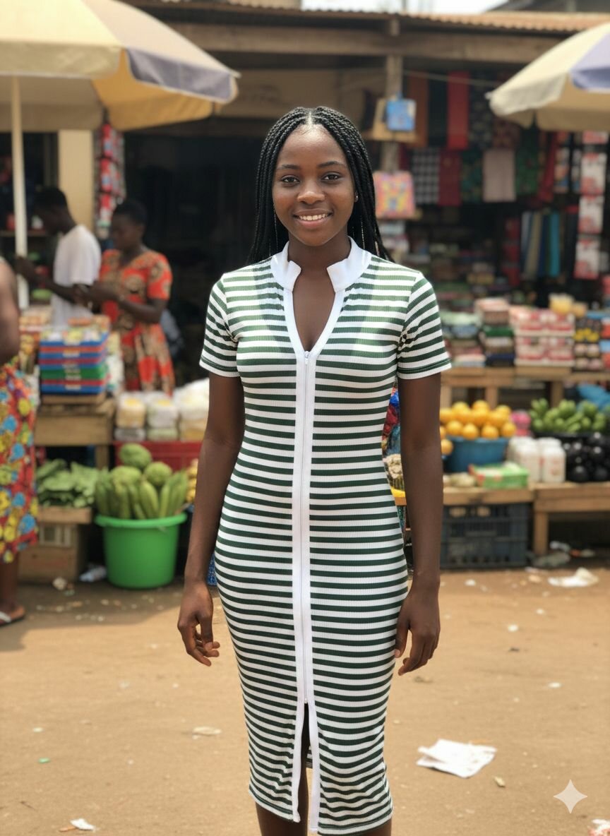 Adoptez un style chic avec cette robe rayée, idéale pour l'été. Sa coupe ajustée met en valeur la silhouette, tandis que le tissu doux assure un confort optimal. Parfaite pour des sorties décontractées ou un look de plage.