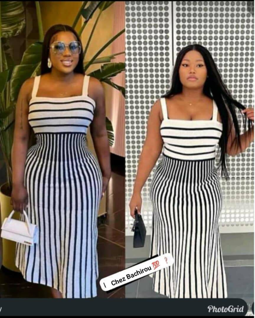 Cette robe rayée bicolore est parfaite pour un look chic et moderne. Son design ajusté souligne la silhouette, tandis que les bretelles élégantes ajoutent une touche féminine. Idéale pour les sorties en ville ou les occasions spéciales, elle s'accorde facilement avec vos accessoires préférés. Confortable et stylée, cette robe sera un ajout polyvalent à votre garde-robe.