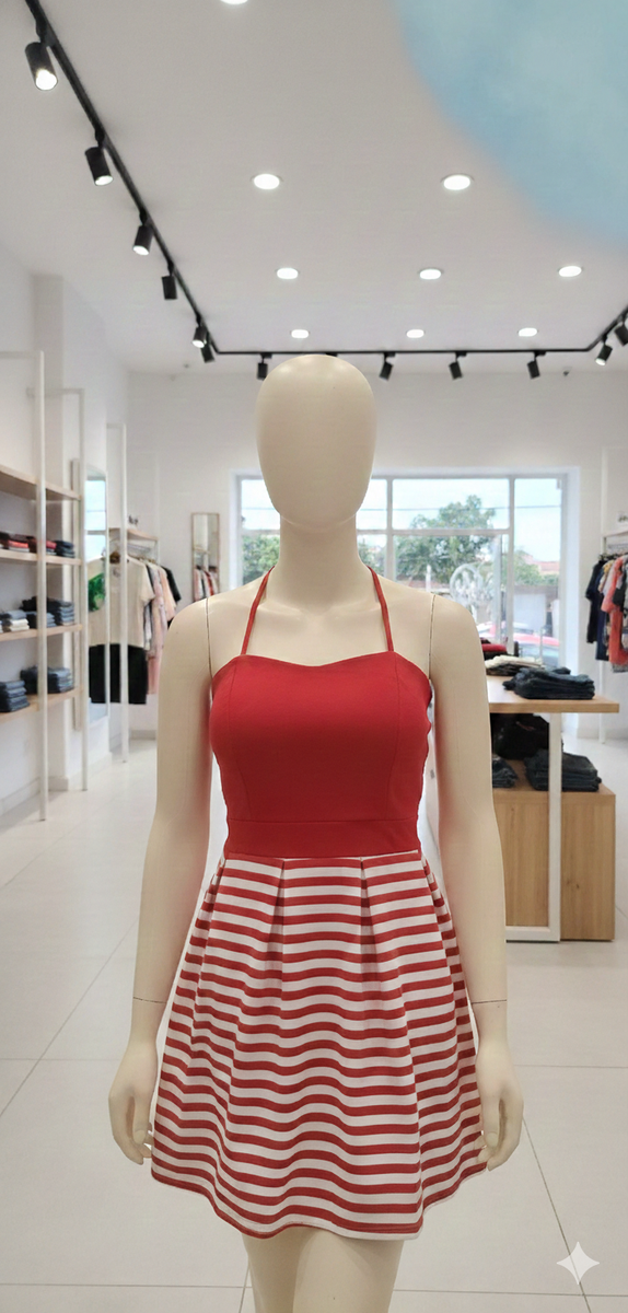 Ravissante robe d'été rouge à rayures, idéale pour une journée ensoleillée. Matière légère et confortable. Parfaite pour des sorties estivales.