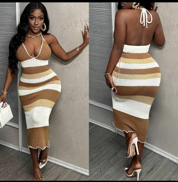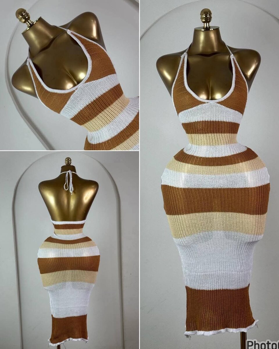 Découvrez cette superbe robe rayée avec bretelles dos nu, parfaite pour une soirée estivale ou une journée décontractée. Confectionnée dans un tissu doux et extensible, elle offre un ajustement flatteur qui souligne votre silhouette. Avec ses nuances terreuses élégantes, c'est un choix idéal pour les femmes qui apprécient le style et le confort. À porter avec des sandales ou des talons pour un look parfait!