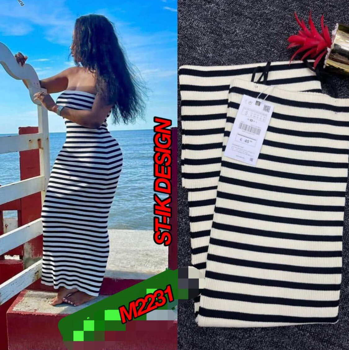 Élégante robe longue rayée sans bretelles, parfaite pour les journées d'été et les sorties en bord de mer. Confortable et chic, elle s'adapte à toutes les silhouettes. Idéale pour un look décontracté tout en restant stylée.