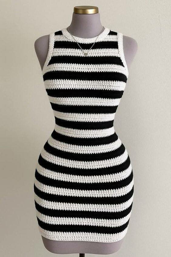 Cette robe rayée tricotée est l'ajout parfait à votre garde-robe. Avec son design élégant et ajusté, elle est idéale pour une sortie décontractée ou une soirée spéciale. Fabriquée avec soin, elle offre confort et style en toute occasion. Portez-la pour faire tourner les têtes!