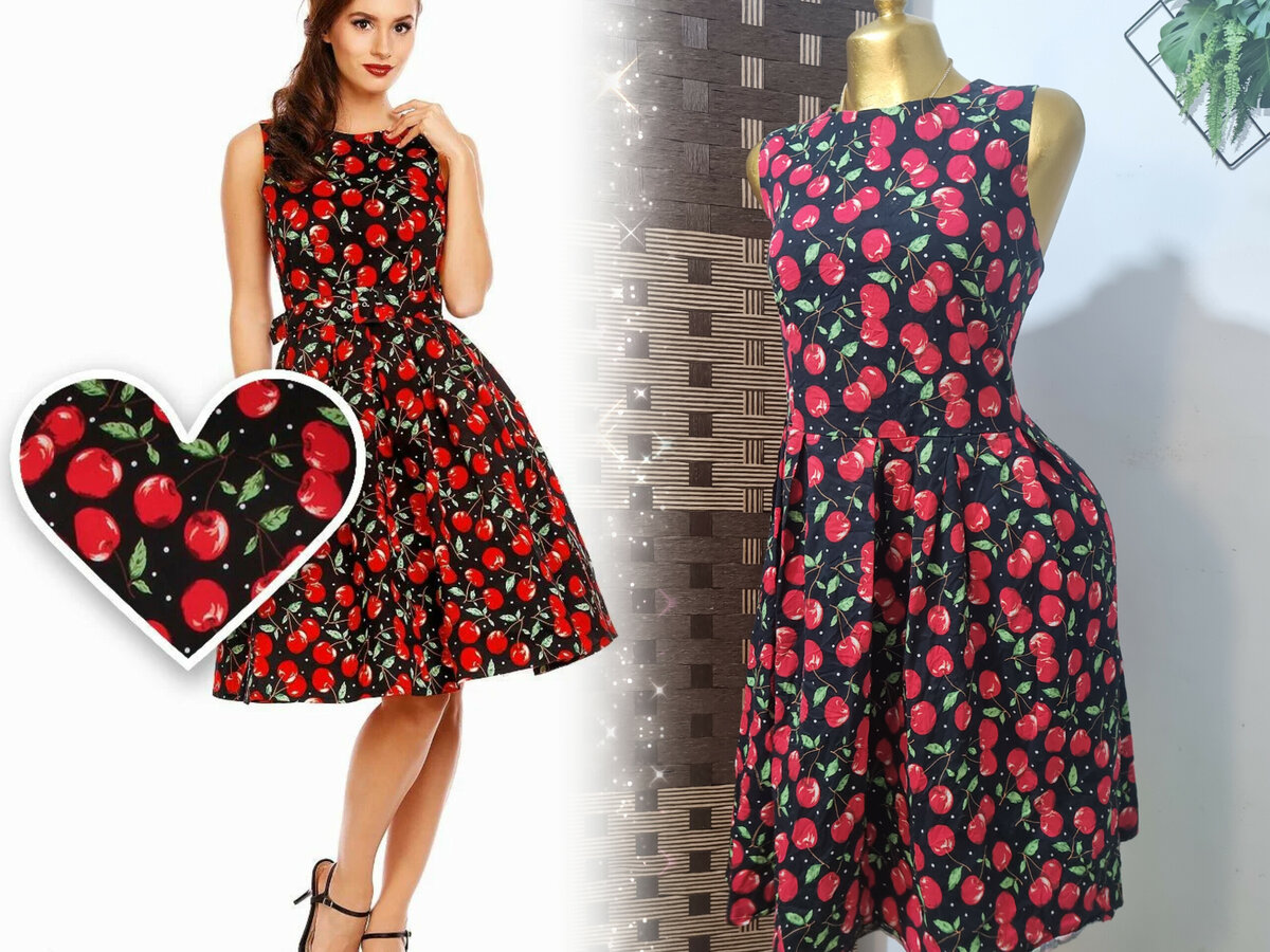 Mettez en avant votre style avec cette élégante robe rétro à imprimé cerises, parfaite pour les fêtes d'été et les sorties décontractées. Conçue en tissu léger et agréable, elle assure confort et allure. Ajoutez une note de fraîcheur à votre garde-robe.