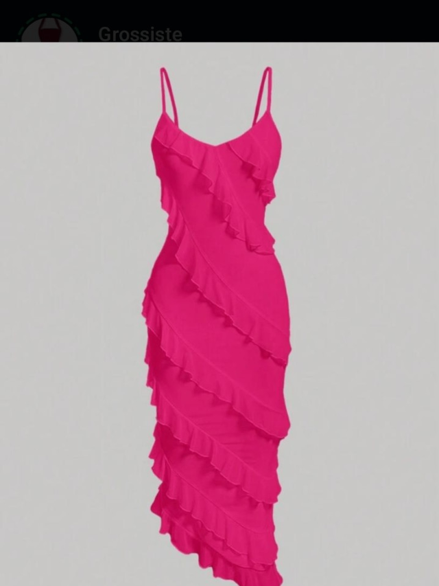 Découvrez cette magnifique robe rose à volants, parfaite pour toute occasion élégante. Confectionnée avec soin, elle met en avant une silhouette flatteuse. Idéale pour les soirées ou occasions spéciales.