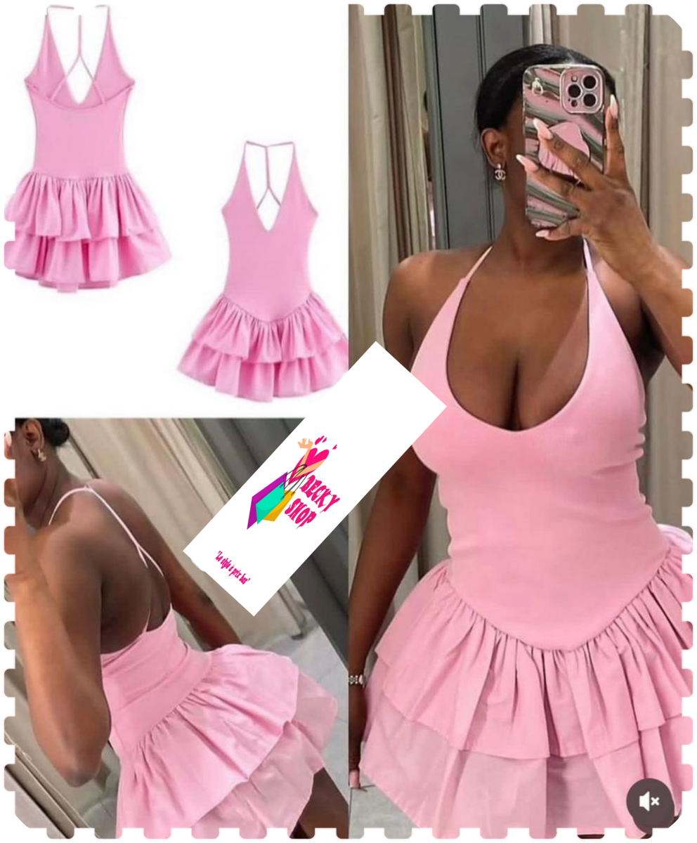 Robe Rose à Volants