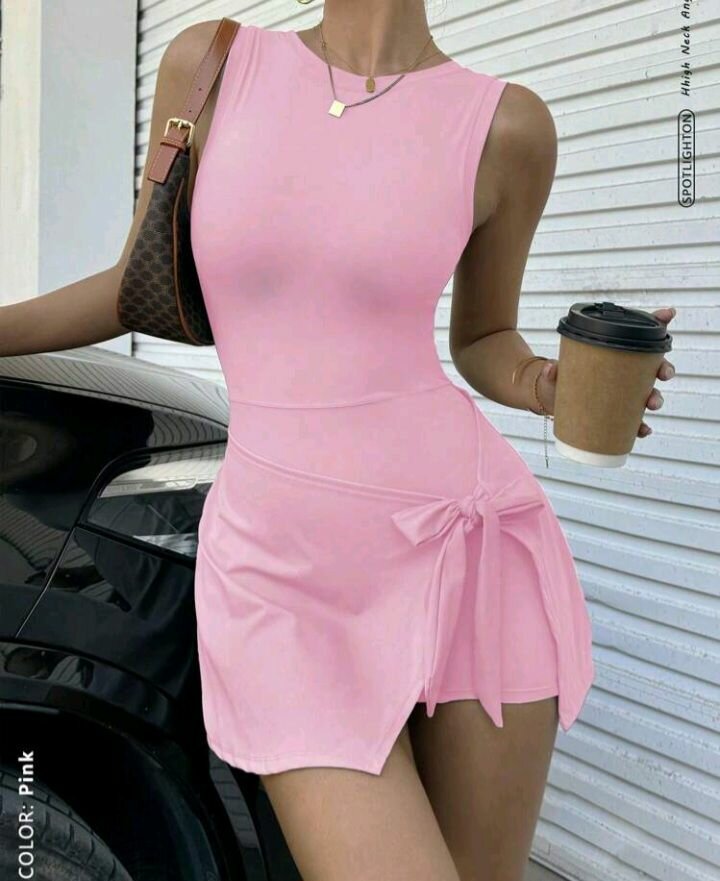 Découvrez cette robe rose élégante, parfaite pour l'été. Fabriquée dans un tissu léger et confortable, elle est idéale pour les sorties décontractées ou les soirées estivales. La coupe ajustée et le nœud décoratif ajoutent une touche féminine et chic. Un choix incontournable pour un look tendance et raffiné.