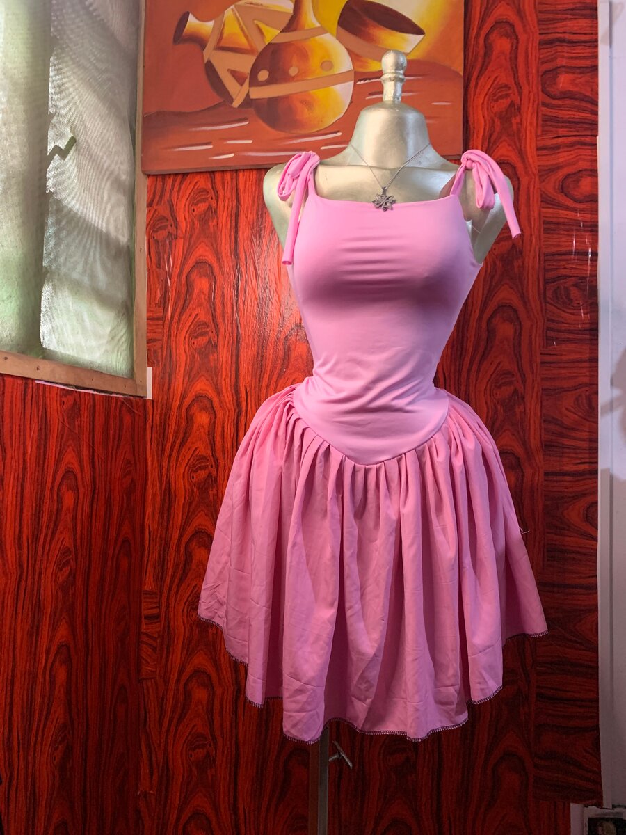 Élégante robe rose avec bretelles à nouer, idéale pour les sorties estivales ou les occasions spéciales. Conçue pour une silhouette flatteuse, cette robe apporte une touche féminine et délicate à votre garde-robe. Le tissu léger et confortable permet une liberté de mouvement et un style enchanteur.
