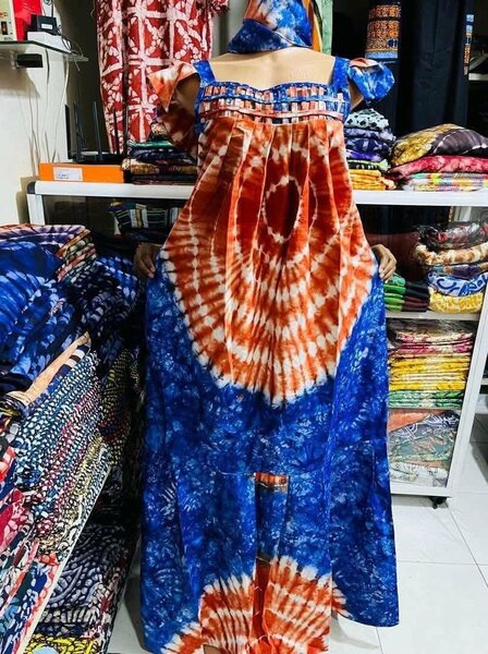 Découvrez cette magnifique robe mi-longue aux couleurs vibrantes, alliant le rose éclatant et des motifs verts élégants.