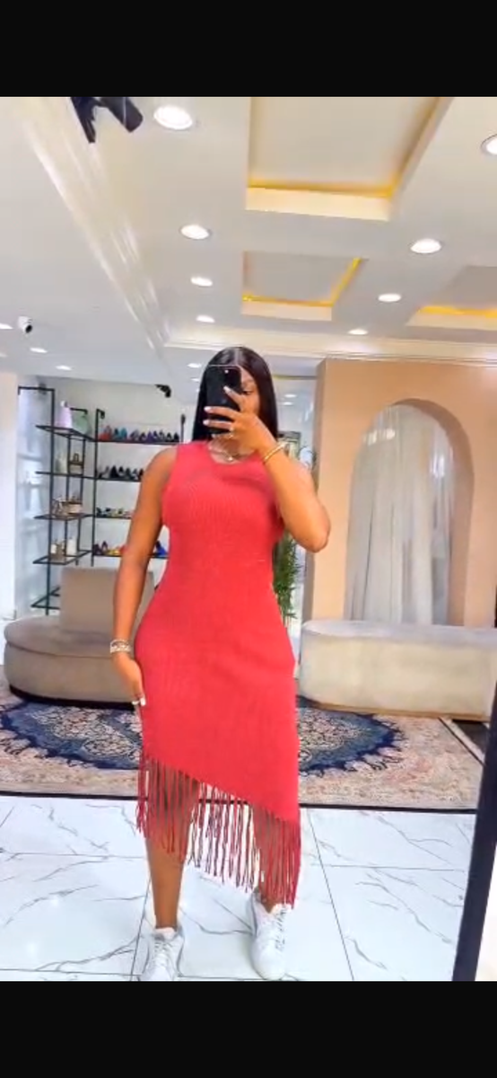 Découvrez cette élégante robe rouge avec une finition à franges. Idéale pour les soirées et événements spéciaux, elle offre un look moderne et sophistiqué. Sa coupe asymétrique met en valeur votre silhouette, tandis que le tissu doux assure un confort optimal. Parfaite pour se démarquer avec style!