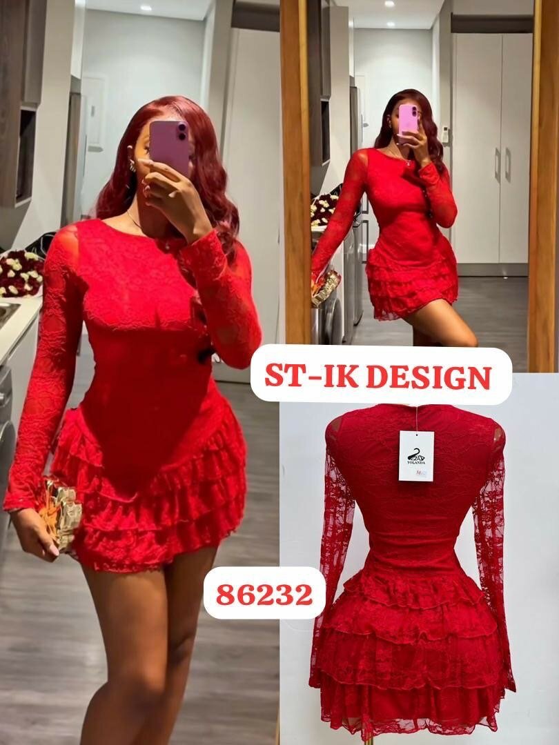 Éblouissante robe rouge en dentelle, parfaite pour les soirées spéciales. Cette robe ajustée avec manches longues et volant flatte toutes les silhouettes. Laissez-vous séduire par son style unique et chic.