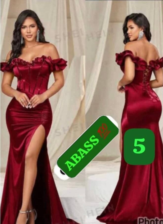 Élégante robe de soirée rouge en satin, parfaite pour les occasions spéciales. Conception ajustée avec fente latérale et manches à volants.
