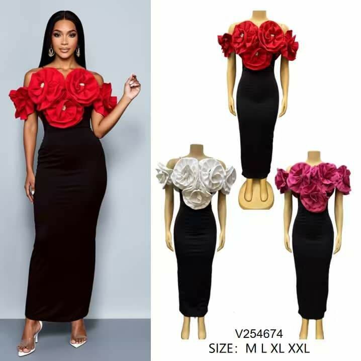 Sublimez vos soirées avec cette élégante robe longue, dotée de fleurs volumineuses sur les épaules. Disponible en plusieurs tailles pour un ajustement parfait. Idéale pour les événements chics, elle ajoutera une touche glamour à votre look.