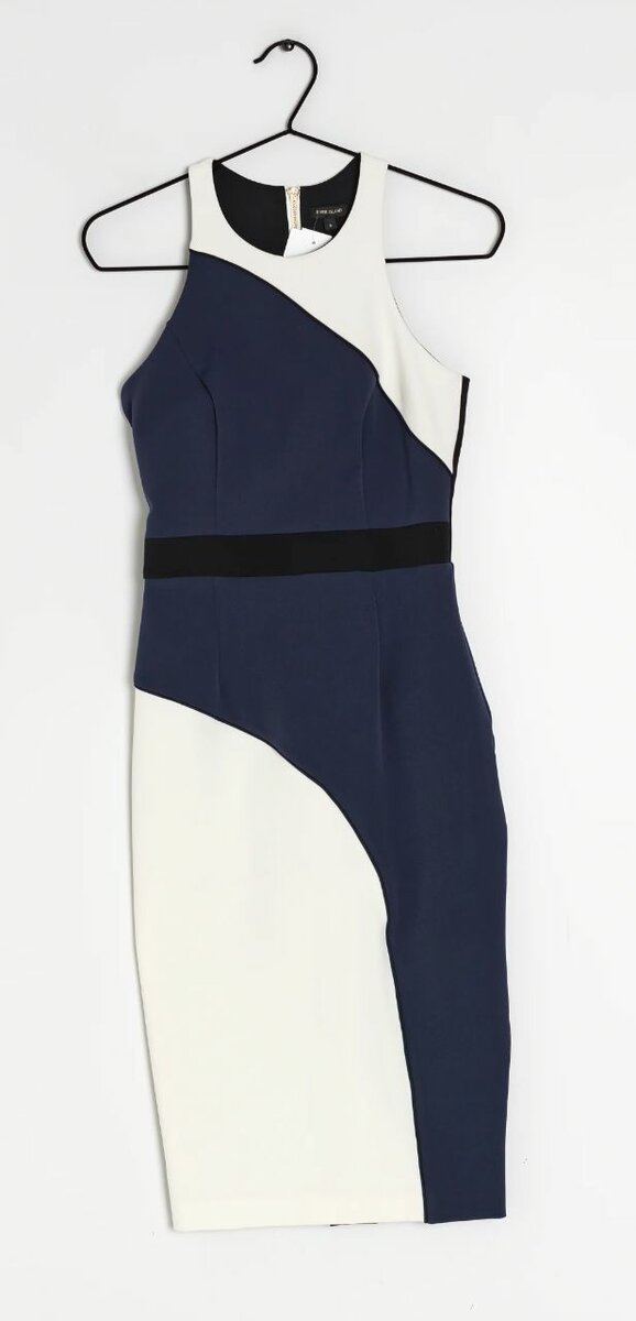 Sublimez votre silhouette avec cette robe moulante bicolore. Son design bleu, noir et blanc offre une allure moderne et chic, parfaite pour des événements spéciaux ou même pour le boulot ou encore l'église.