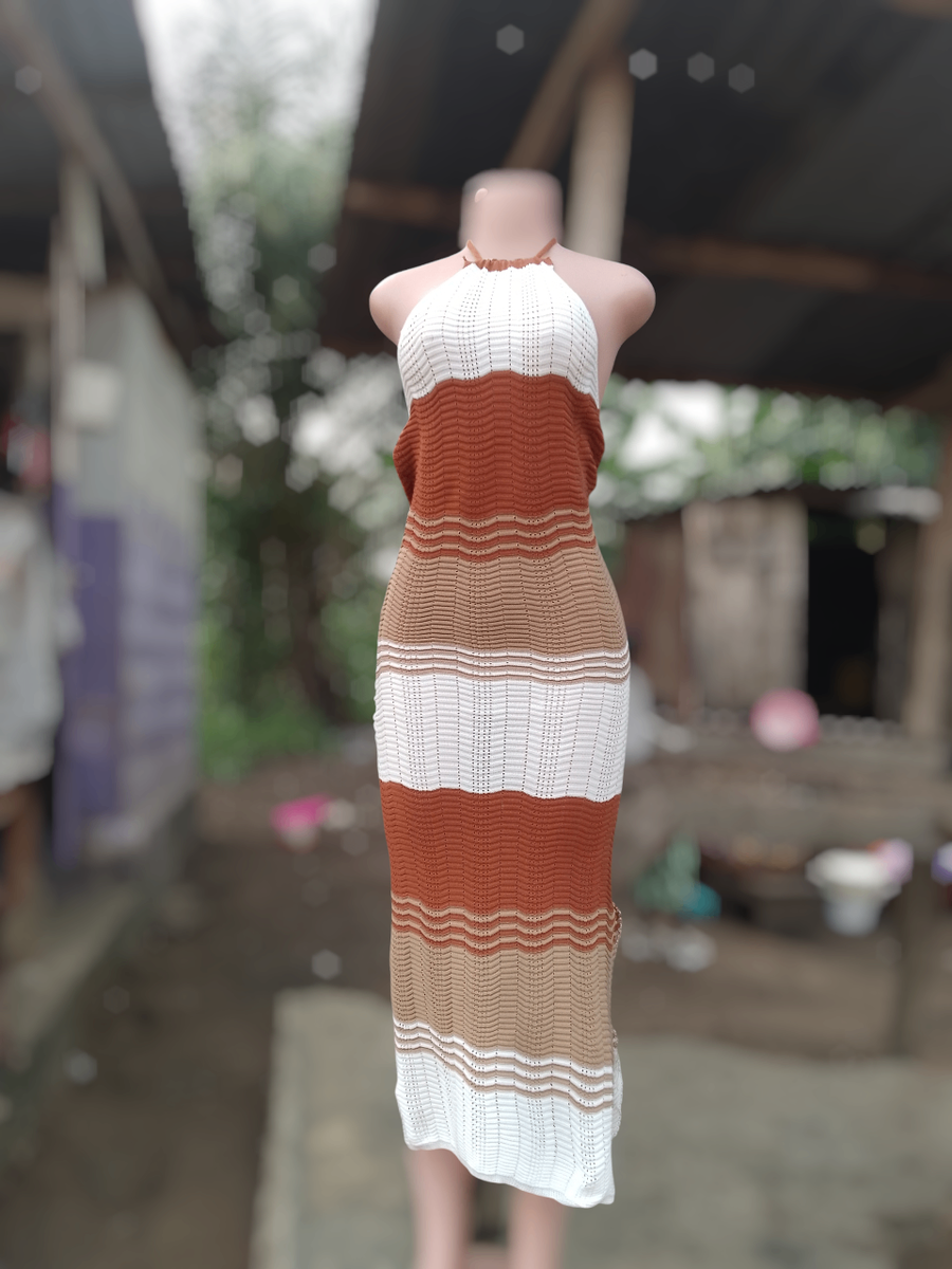 Robe élégante et confortable, idéale pour les occasions décontractées. Conçue avec un motif rayé et des couleurs chaudes.