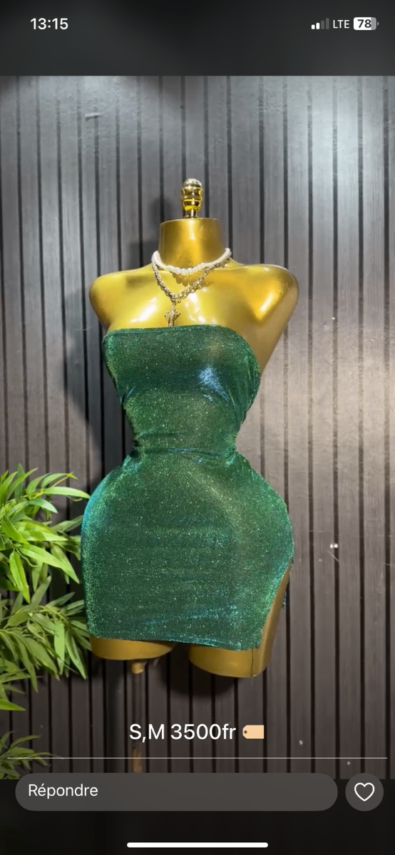 Élégante robe tube scintillante verte, parfaite pour soirées et événements spéciaux. Disponible en tailles S et M, elle épouse votre silhouette pour un look glamour et sophistiqué. Confectionnée dans un tissu confortable, elle capte la lumière pour un effet époustouflant sous chaque angle.