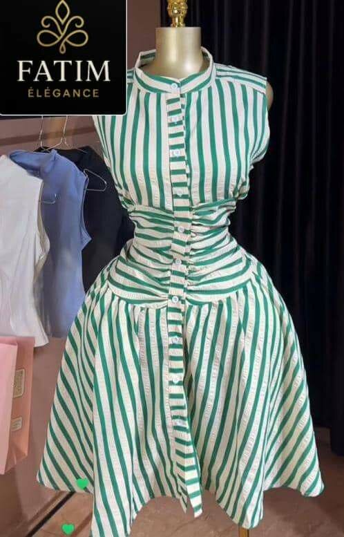 Découvrez la robe verte élégante de FATIM, conçue pour celles qui recherchent un style raffiné et moderne. Confectionnée avec des matériaux de haute qualité, cette robe à rayures vertes et blanches offre un confort optimal et une allure chic. Idéale pour les occasions spéciales ou une sortie décontractée.