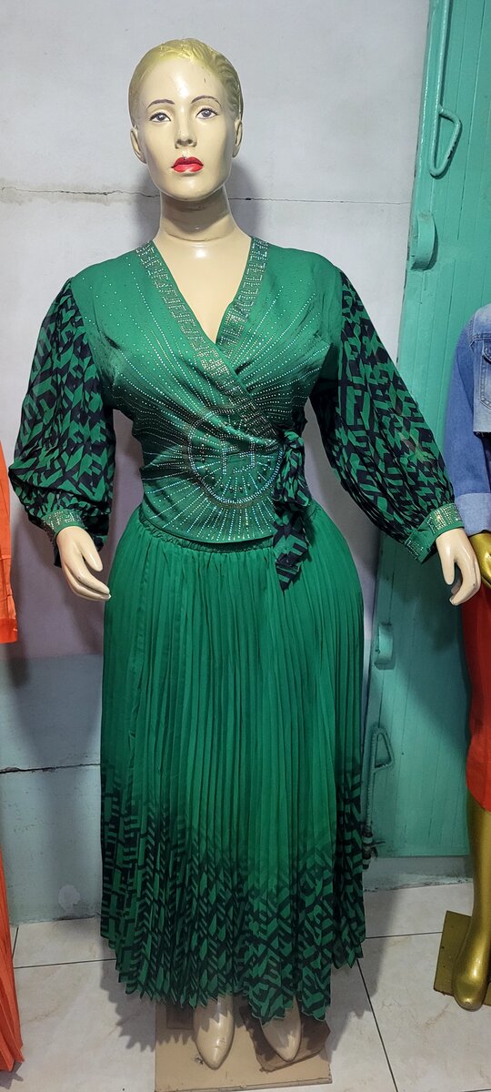 Découvrez notre robe verte élégante avec des motifs sophistiqués et un design plissé flatteur. Parfaite pour les occasions spéciales, cette robe assure un look chic et raffiné. Sa coupe accentue la silhouette, offrant confort et style impeccable. DISPONIBLE !