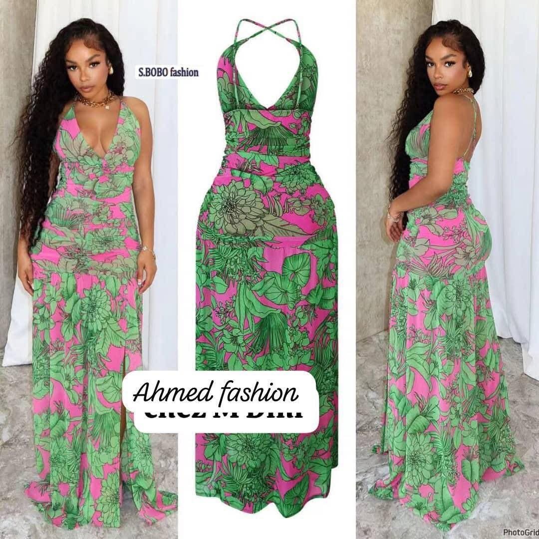 Transformez votre look avec cette robe longue vintage à motif floral. Idéale pour les événements spéciaux, elle offre une silhouette flatteuse avec son décolleté plongeant et ses bretelles croisées. Fabriquée dans un tissu léger et fluide, elle assure confort et style tout au long de la journée. Un choix parfait pour un look estival chic et sophistiqué.