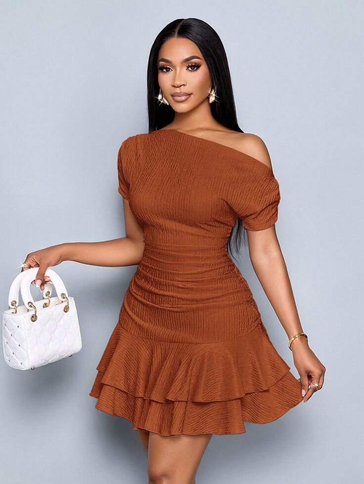Optez pour l'élégance avec cette robe volante épaule nue. Parfaite pour une soirée glamour ou un événement spécial, sa coupe flatteuse et son tissu texturé vous assureront une allure chic et contemporaine. Idéale pour être portée avec des accessoires dorés pour un style raffiné.