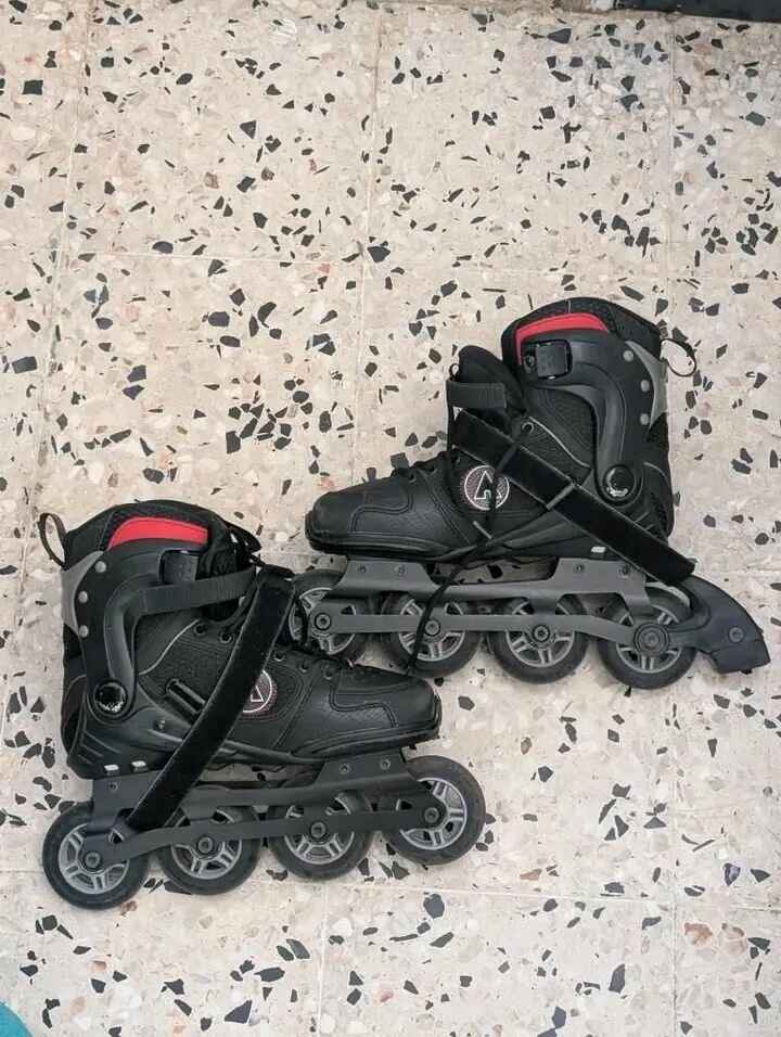 Ensemble de rollers et protections pour une expérience de patinage sécurisée et agréable. Choisissez entre modèles élégants noir ou turquoise. Comprend genouillères, coudières et protège-poignets. Parfait pour loisirs ou sport. Convient aux débutants et intermédiaires. Sécurité et style garantis!