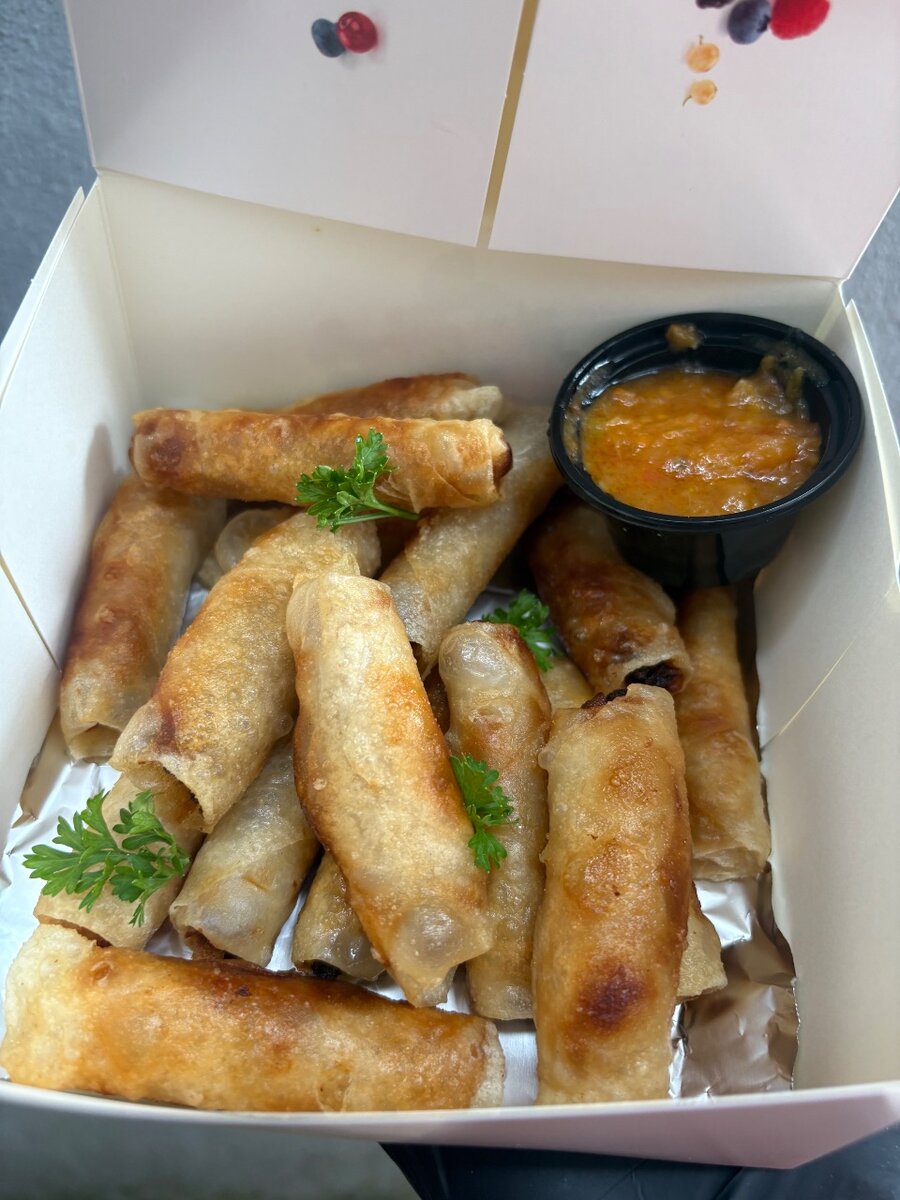 Dégustez ces rouleaux de printemps croustillants, dorés à la perfection. Accompagnés d'une sauce savoureuse, ils sont idéals pour une entrée ou un snack rapide. Parfaits pour partager avec des amis ou pour un plaisir personnel. Ne manquez pas cette expérience gustative unique!