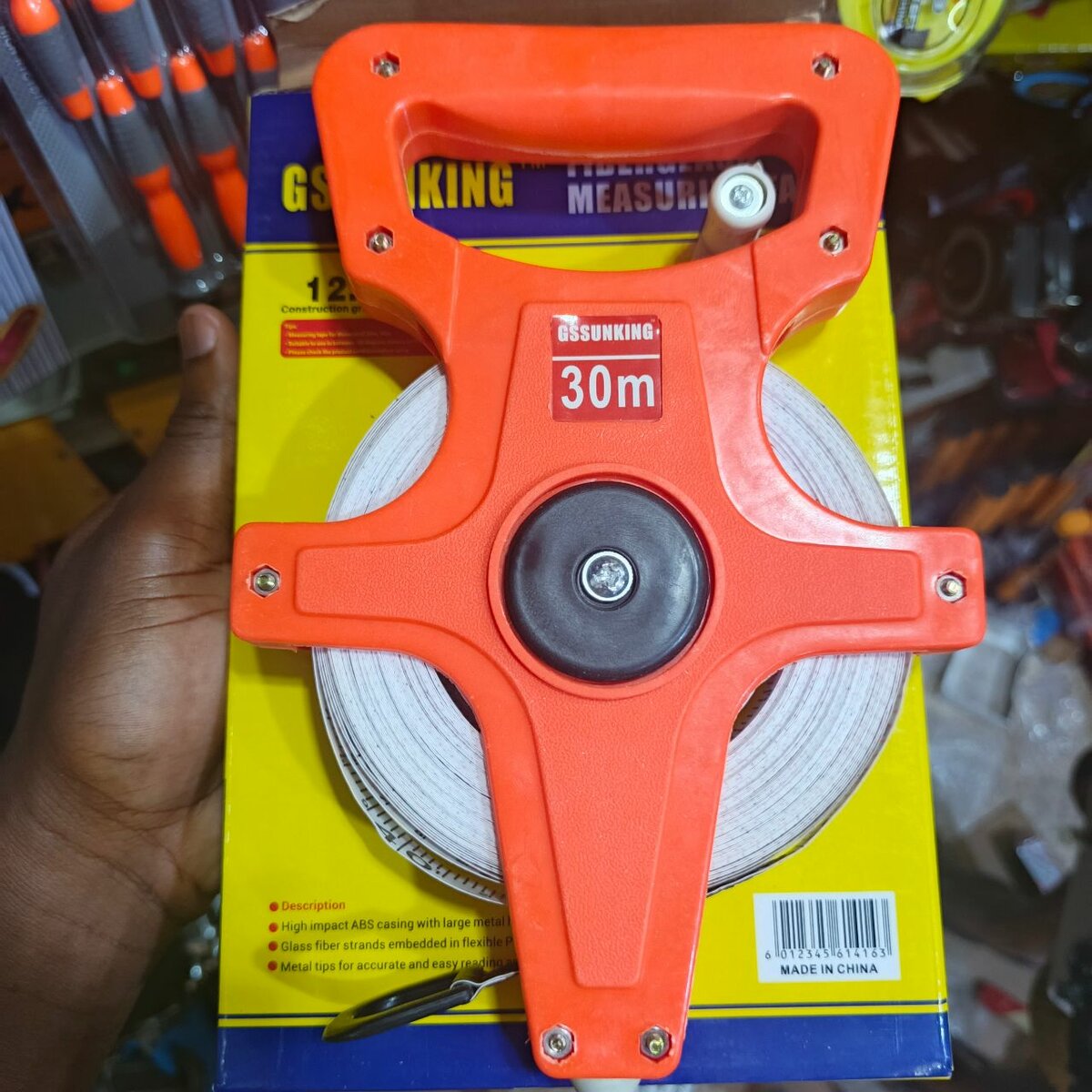 Ruban à mesurer durable de 30m GSUN pour les projets de construction et bricolage. Poignée ergonomique et précision garantie. Idéal pour les professionnels et amateurs.