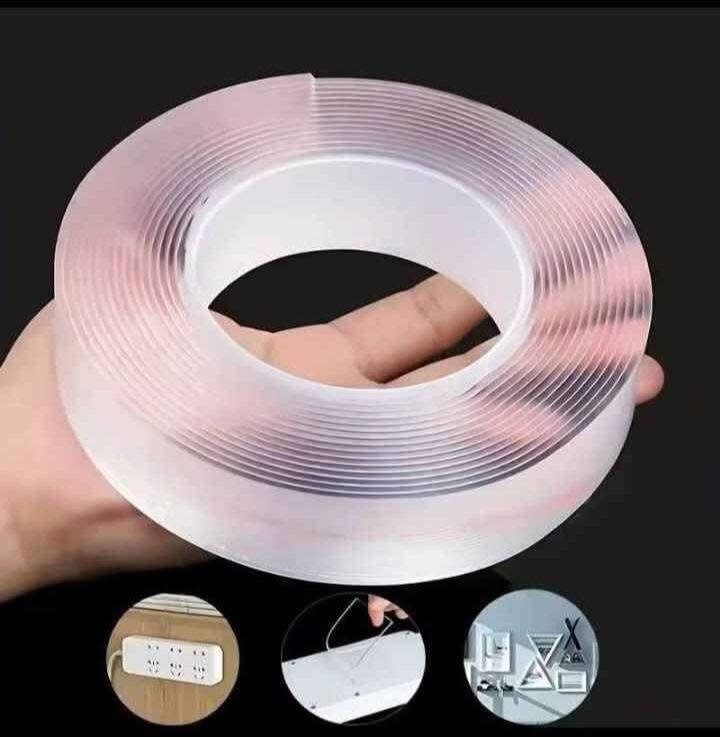 Ruban adhésif transparent réutilisable et lavable, idéal pour fixer objets au mur, sous meubles ou organiser câbles. Parfait pour la maison ou le bureau, facile à utiliser et coupe ajustable. Résistant à l'humidité et durable.