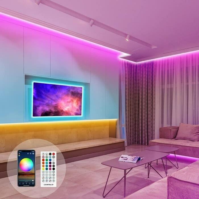 Ruban led light facile à installer avec télécommande Il est adhésif donc colle directement au mur