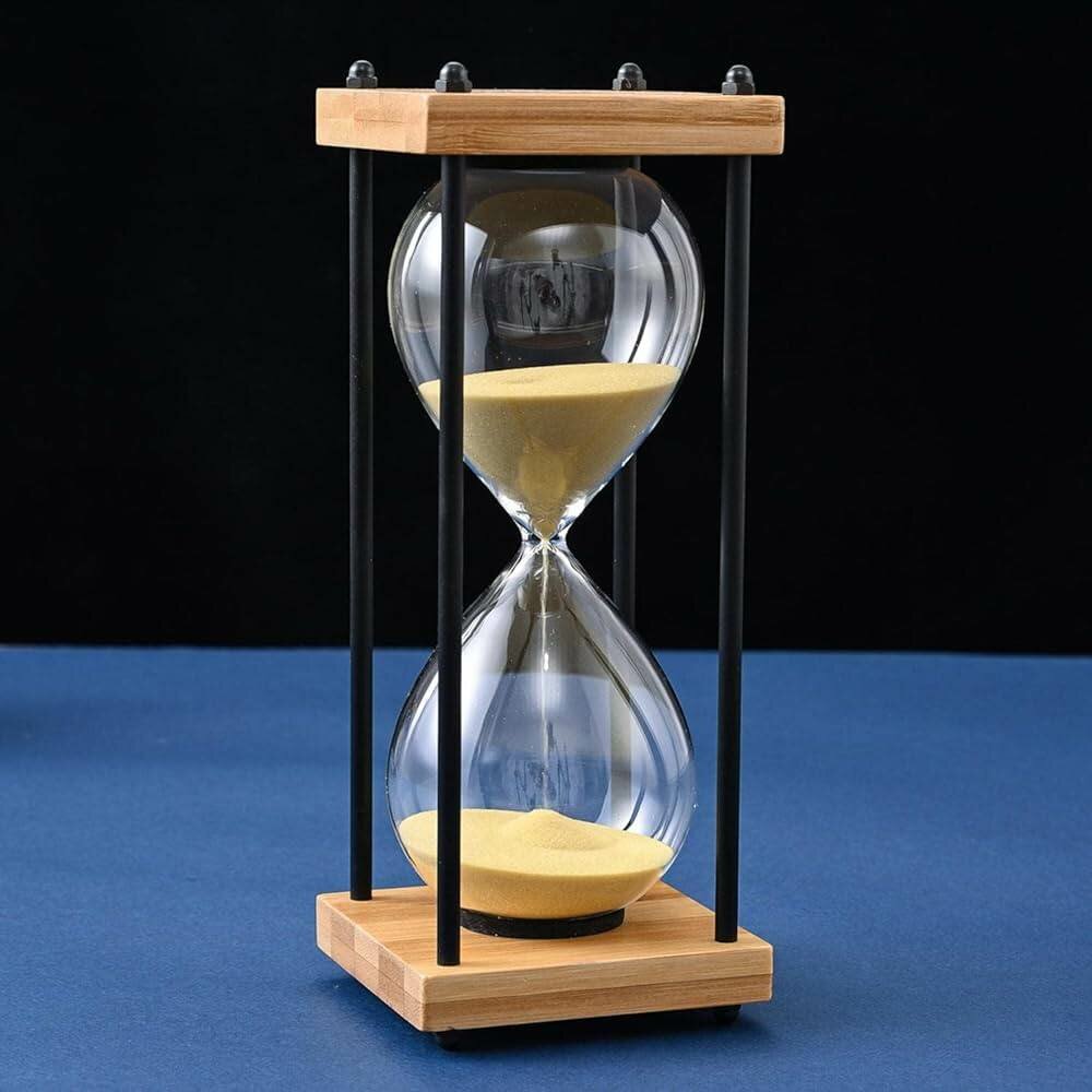 Magnifique sablier en verre avec base en bois, parfait pour l'intérieur moderne. Idéal pour la décoration de bureau ou de salon, cet objet intemporel offre une touche de sophistication et de sérénité à votre espace.