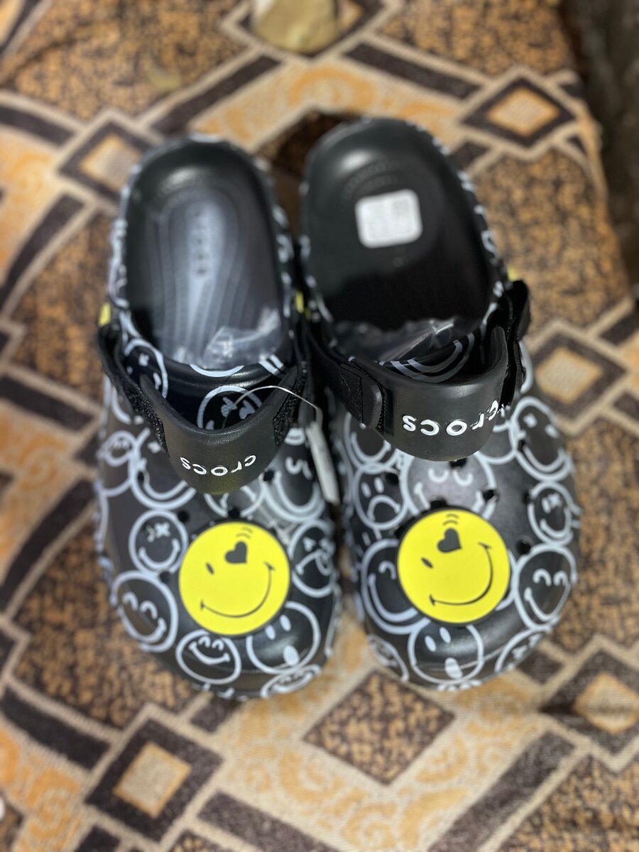 Apportez une touche ludique à votre tenue avec ces sabots à motifs de visages souriants. Confortables et légers, parfaits pour l'intérieur comme l'extérieur. Idéal pour un usage quotidien ou pour se détendre.