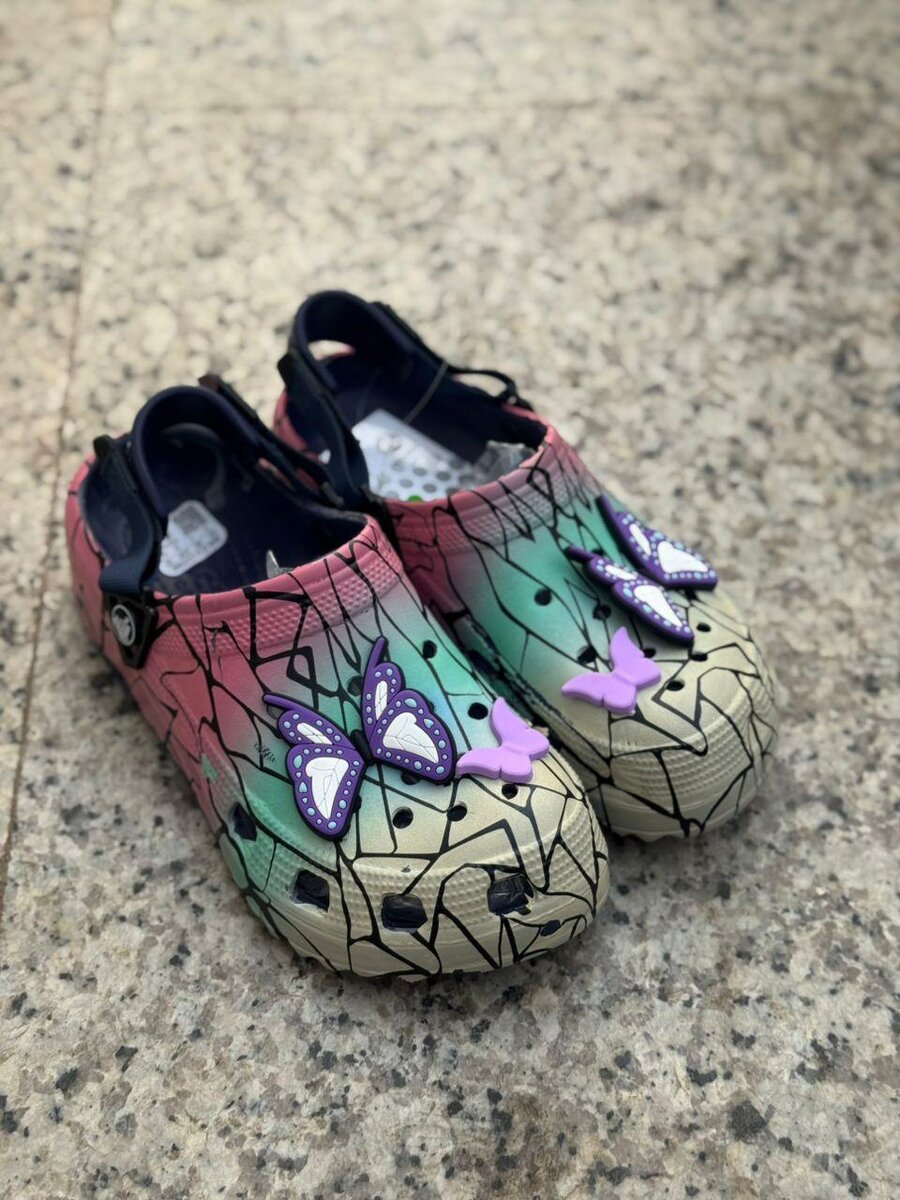 Découvrez ces adorables sabots colorés pour enfant, ornés de charmants papillons. Parfaits pour les activités estivales et les jeux en extérieur, ces sabots combinent style et confort. Dotés d'un design aéré pour garder les pieds frais, ils sont le choix idéal pour vos petits aventuriers !