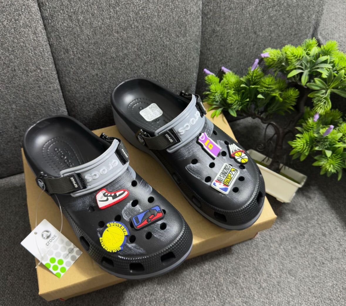 Les Crocs sont des chaussures légères et confortables en mousse, reconnaissables à leur forme arrondie et à leurs trous daération.