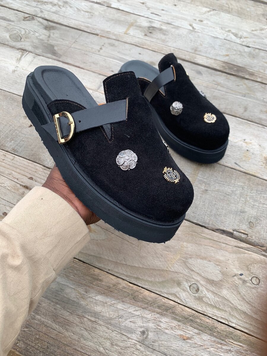 Ces sabots noirs en daim sont décorés avec des motifs élégants et dotés d'une ceinture réglable. Parfaits pour un look original et confortable, ils combinent la mode moderne avec un confort exceptionnel. Idéals pour les sorties décontractées et les rendez-vous stylés.