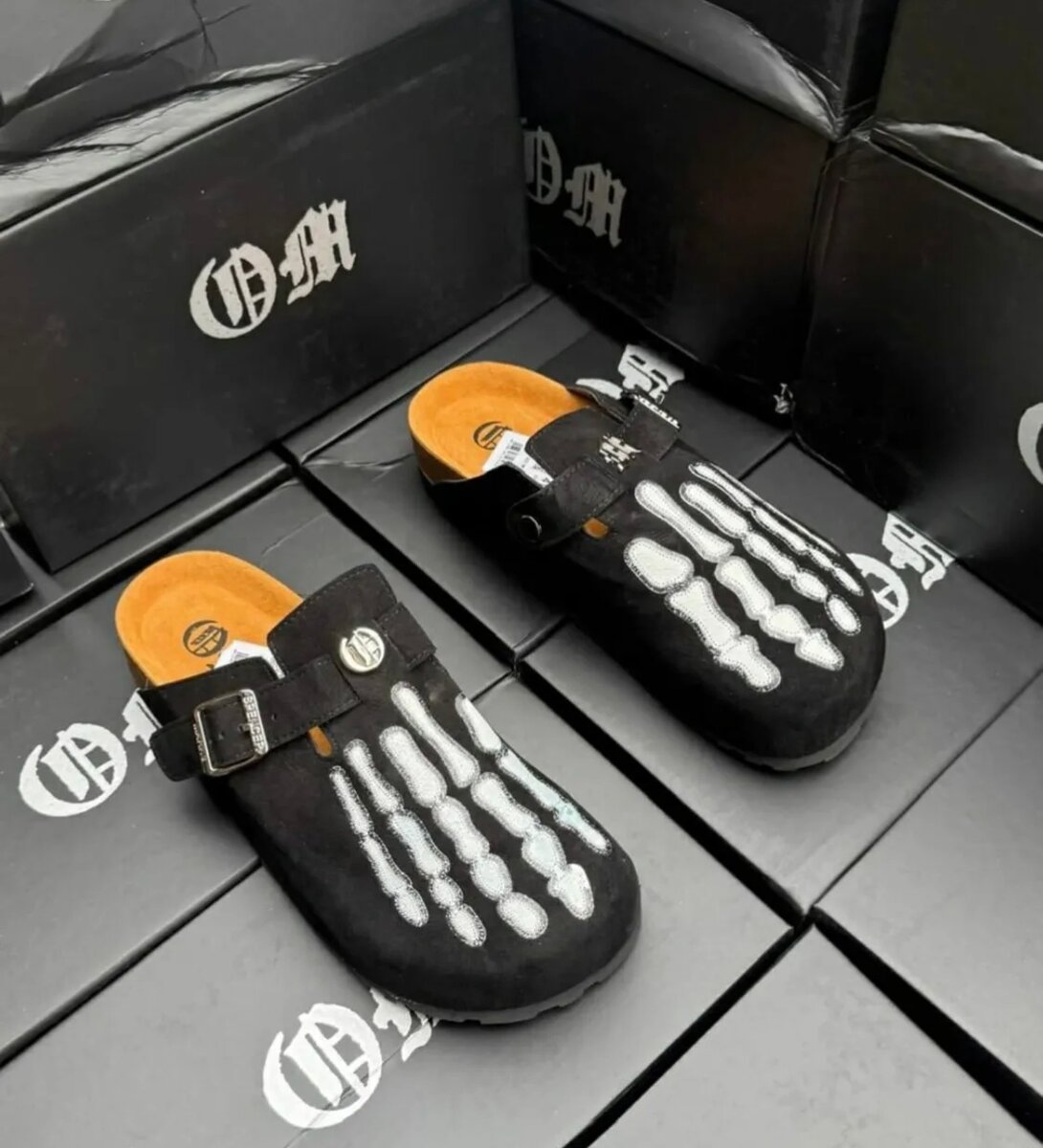 Découverts en cuir avec design squelettique, ces sabots modernes offrent confort et style unique. Idéal pour une allure tendance et audacieuse.