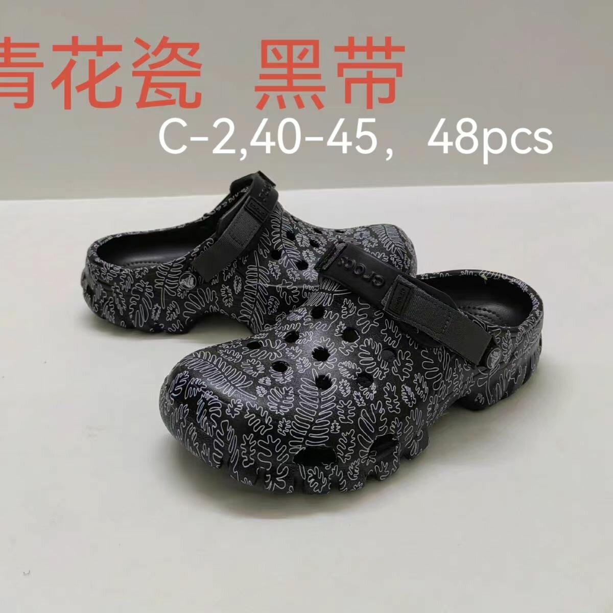 Découvrez ces sabots unisex élégants, idéals pour une utilisation quotidienne. Fabriqués avec des matériaux de qualité supérieure pour un confort optimal. Modèle noir à motif floral, parfait pour l'intérieur et l'extérieur. Taille disponible de 40 à 45.